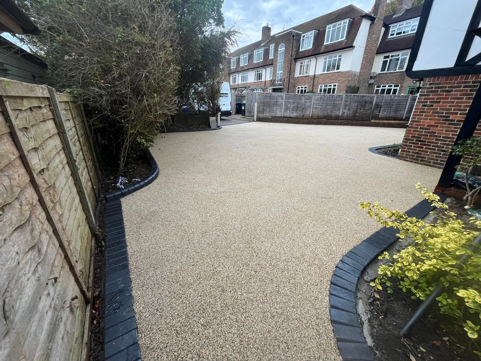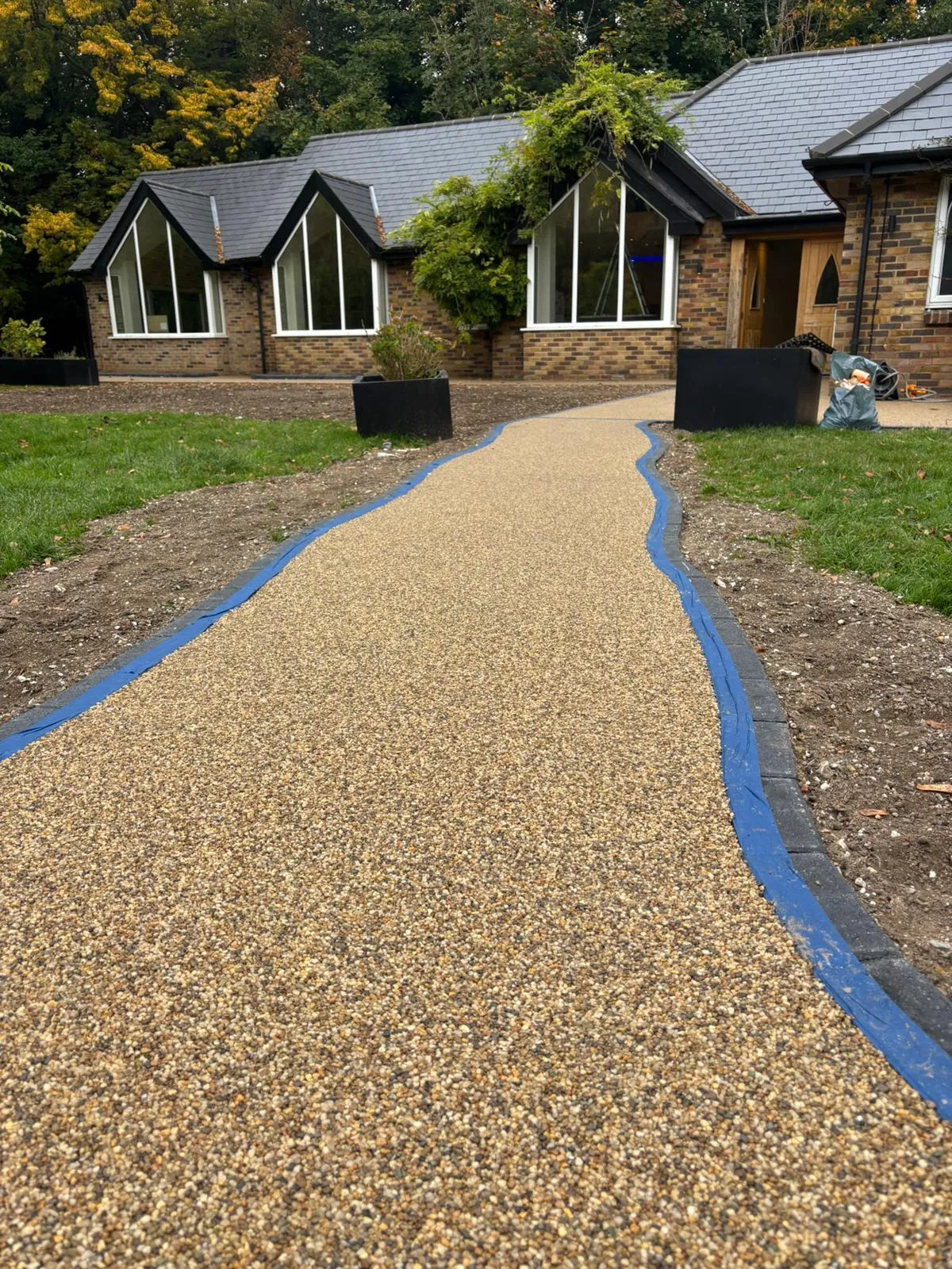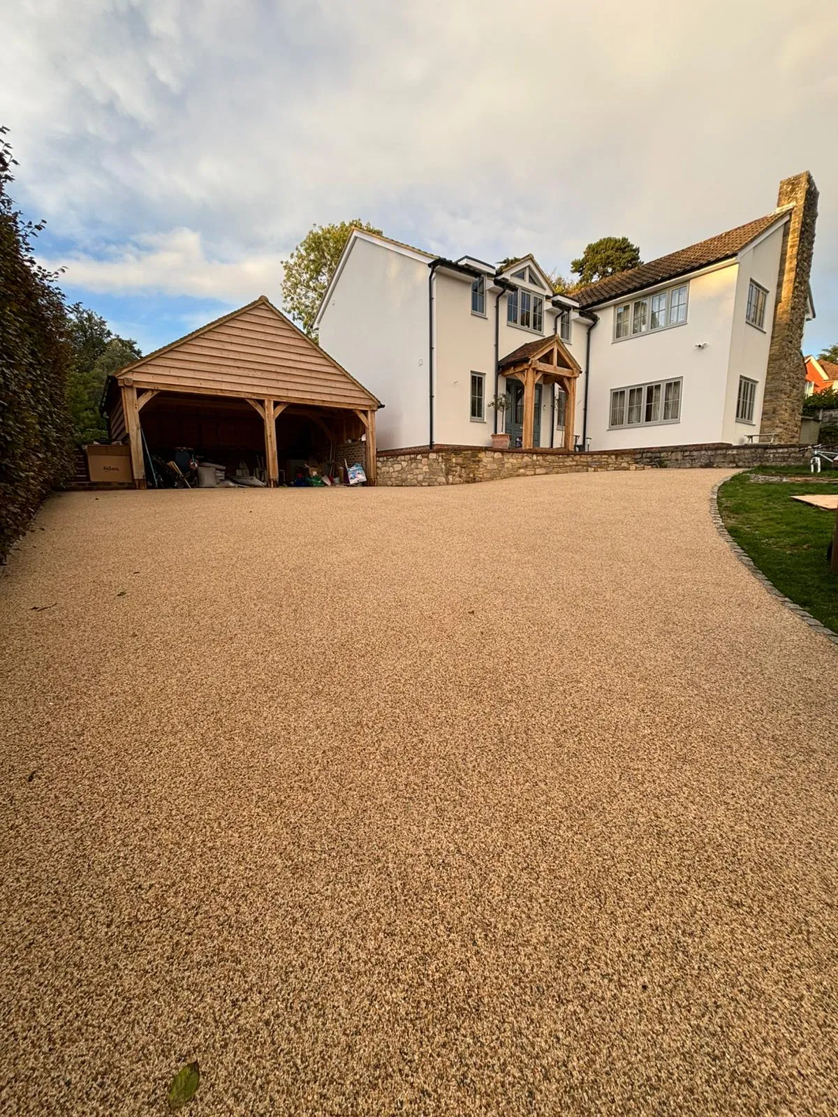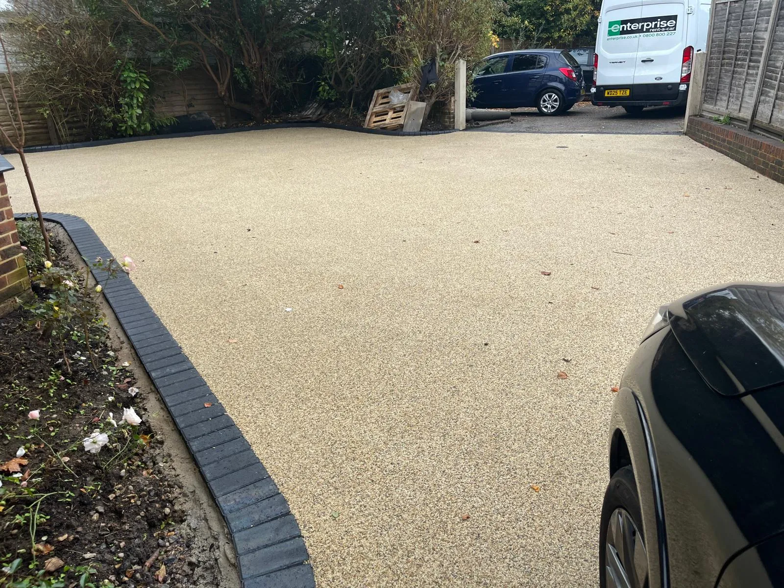 Most resin bound surfaces can be walked on within 6–8 hours and driven on after 24 hours, depending on weather conditions.